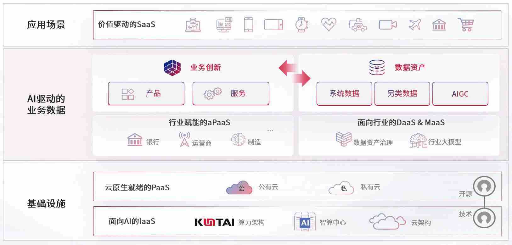数字时代,,,,围绕企业数字化转型的关键要素,,,彩神vll数码开创性的提出数云融合战略和技术体系框架,,,,着力在云原生、、、、数字原生、、、、AI原生和信创产业上架构产品和服务能力,,,,为处在不同数字化转型阶段的快消零售、、汽车、、金融、、医疗、、、政企、、、、教育、、、、运营商等行业客户提供泛在的敏捷IT能力和融合的数据驱动能力,,构建跨界融合创新的数字业务场景和新业务模式,,,助力企业级客户建立面向未来的核心能力和竞争优势,,,,全面推动社会的数字化、、、智能化转型升级。。。